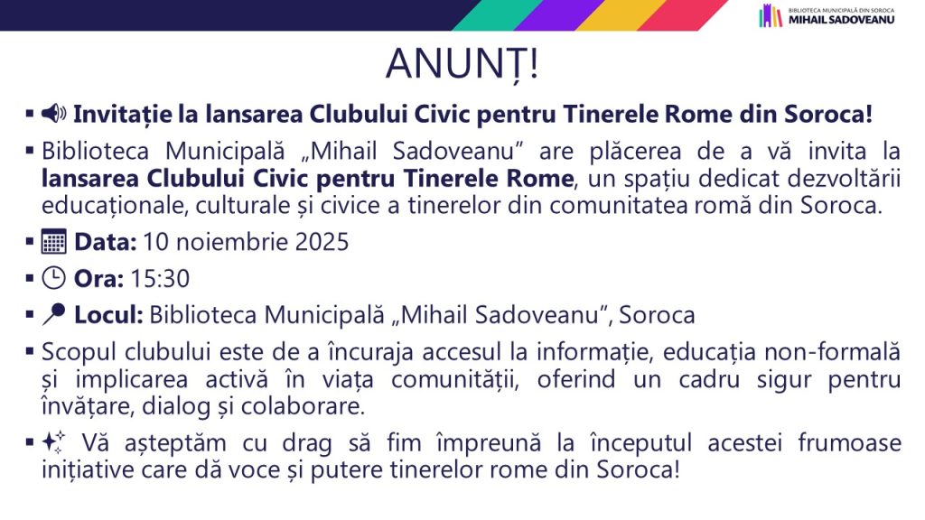 • Exploratorii de Cuvinte – o nouă aventură literară la Biblioteca Municipală „Mihail Sadoveanu” Soroca